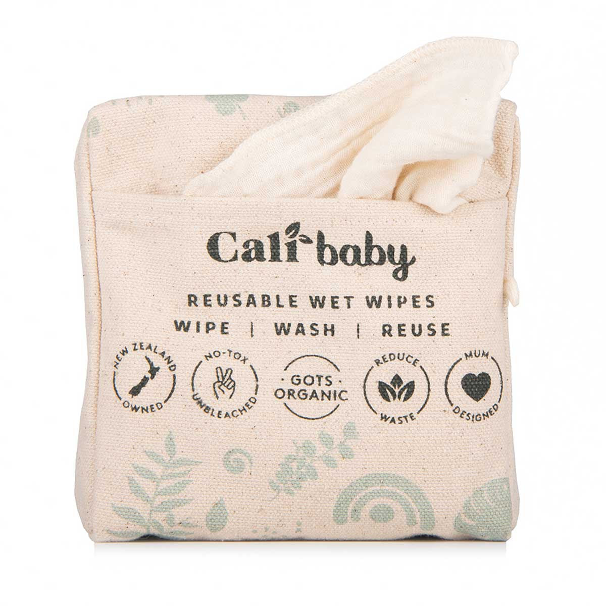 CaliWoods Reusable Wet Wipes are a zero-waste staple for eco-conscious parents and the perfect companion for early potty training. The CaliBaby Reusable Wet Wipes replace single-use disposables and are completely plastic free, meaning no microplastics will enter the waterways during the washing process. Each pack has 12 GOTS organic cotton muslin wipes. A soft, no-tox alternative for your baby's bottom, face, or hands. All you have to do is wipe, wash and reuse. These are also biodegradable at the end of their product life. Just cut them into pieces and add them to your home compost.
