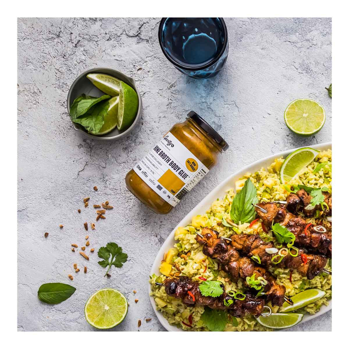 Gevity Bone Broth Body Glue Curry is an instant broth with deliciously spicy aromatics and flavour to match. Add nutrients and extra flavour to curry dishes. Great in stir-frys and slow cooked red meat dishes. Just add water for a cup of broth to make curry in a hurry!
