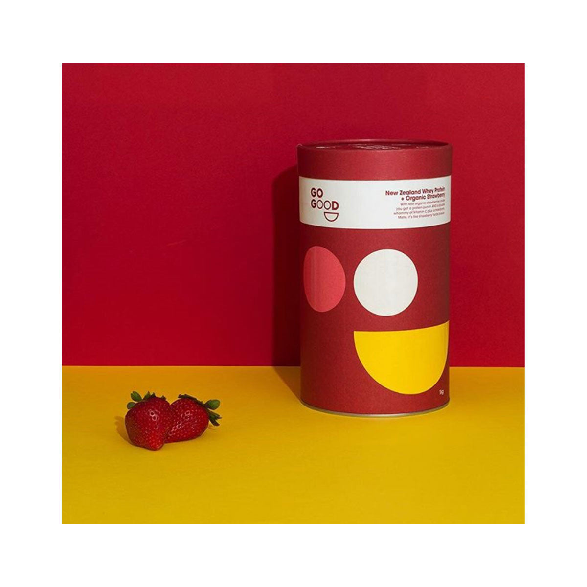 Go Good New Zealand Whey Protein + Organic Strawberry packed with real organic strawberries inside you get a protein punch and a double whammy of vitamin C plus antioxidants.