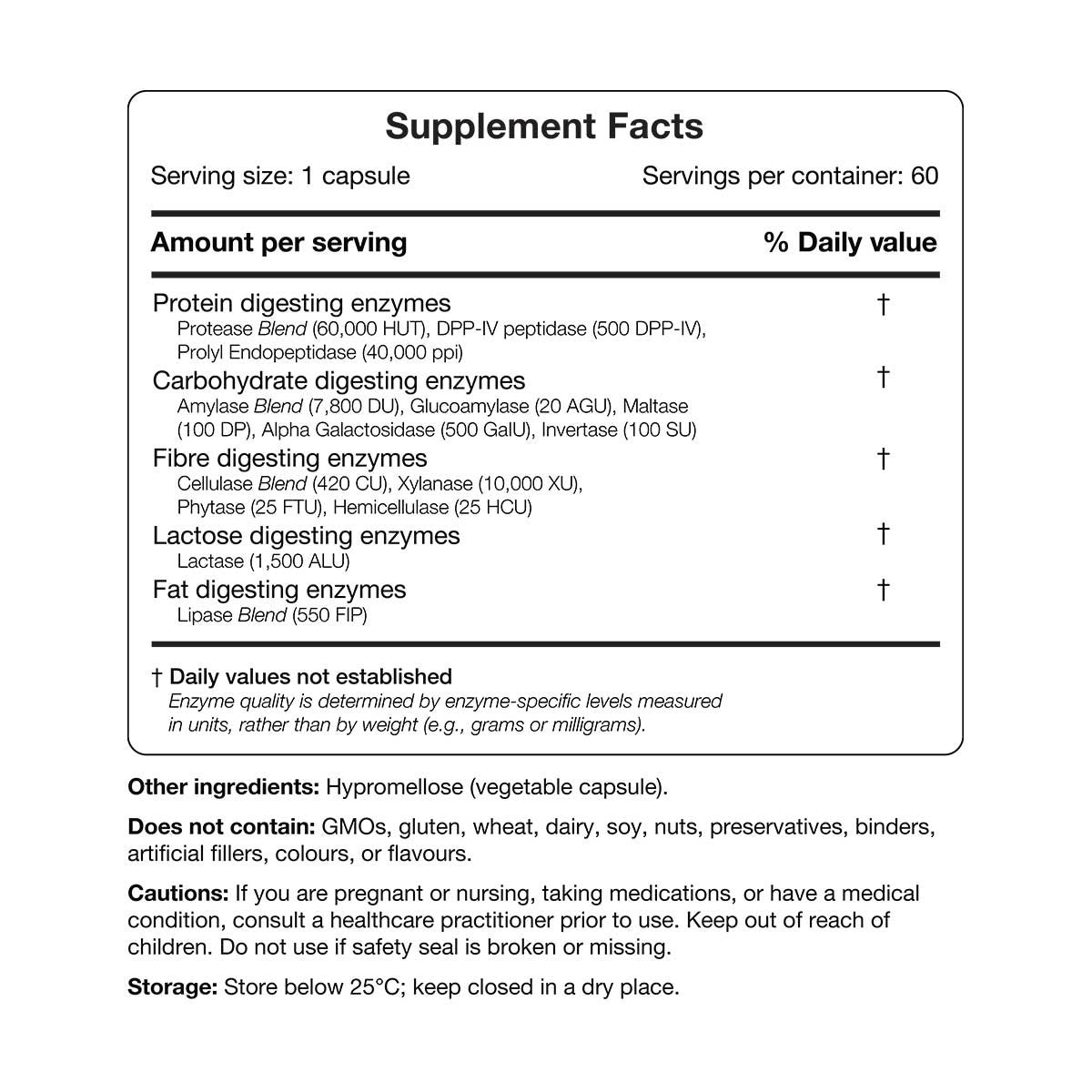 Crafted with a specialised blend of 14 full spectrum enzymes, this high potency complex works across the entire pH range of the digestive tract. By supporting the breakdown of a wide range of foods and nutrients from proteins, fats and carbohydrates to gluten, dairy and phenols, you can enjoy meals worry-free.