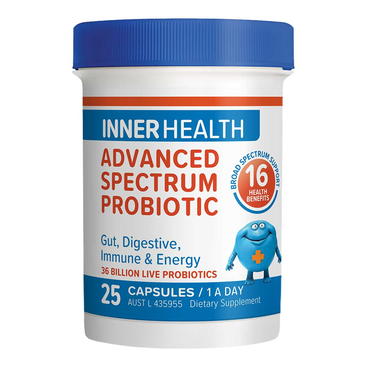 Inner Health Advanced Spectrum Probiotic is a high strength, broad spectrum probiotic with 16 benefits including support for energy, skin health and the digestive and the immune system.