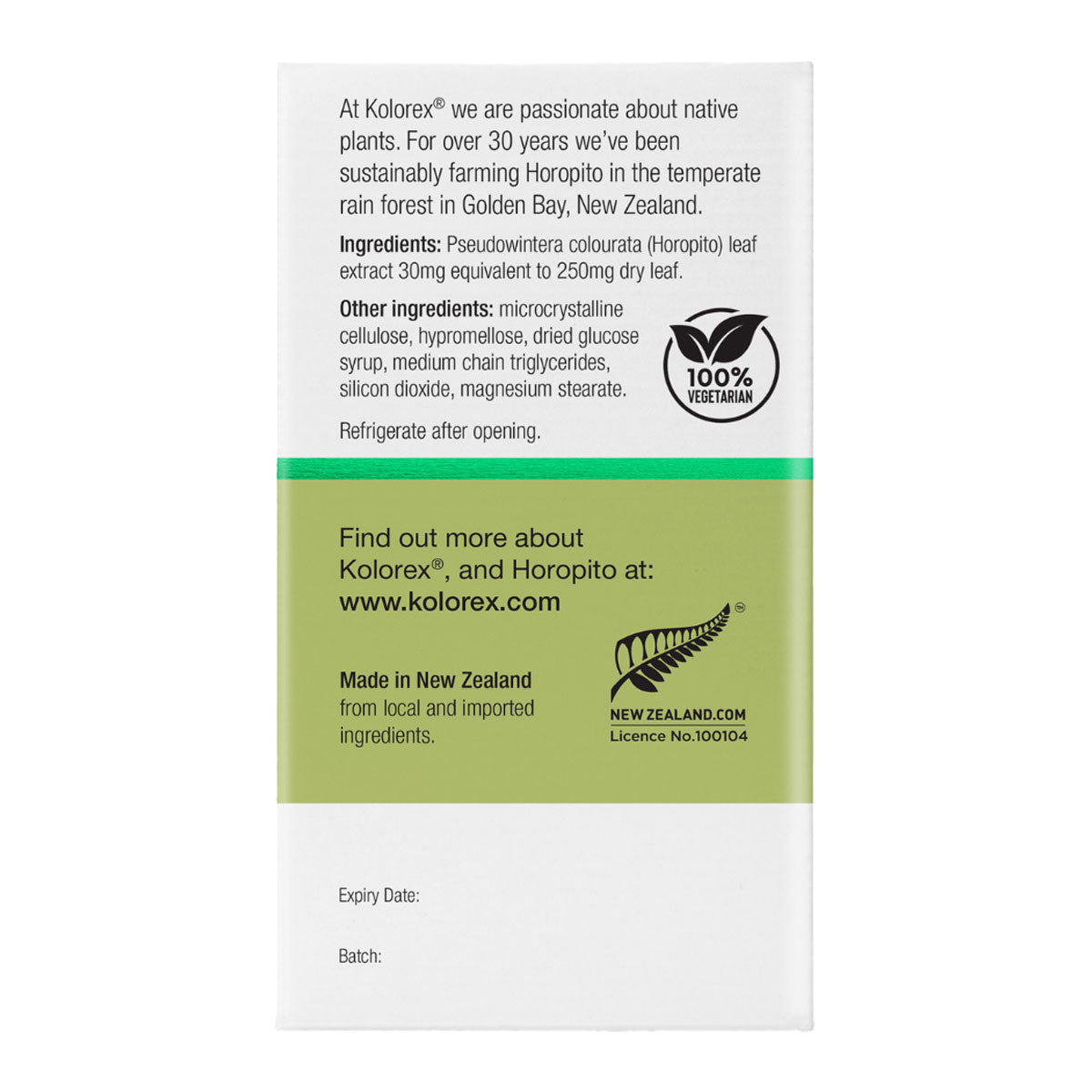 Kolorex supports intestinal microflora with bioactive horopito encapsulated in a targeted-release, vegan-certified capsule.