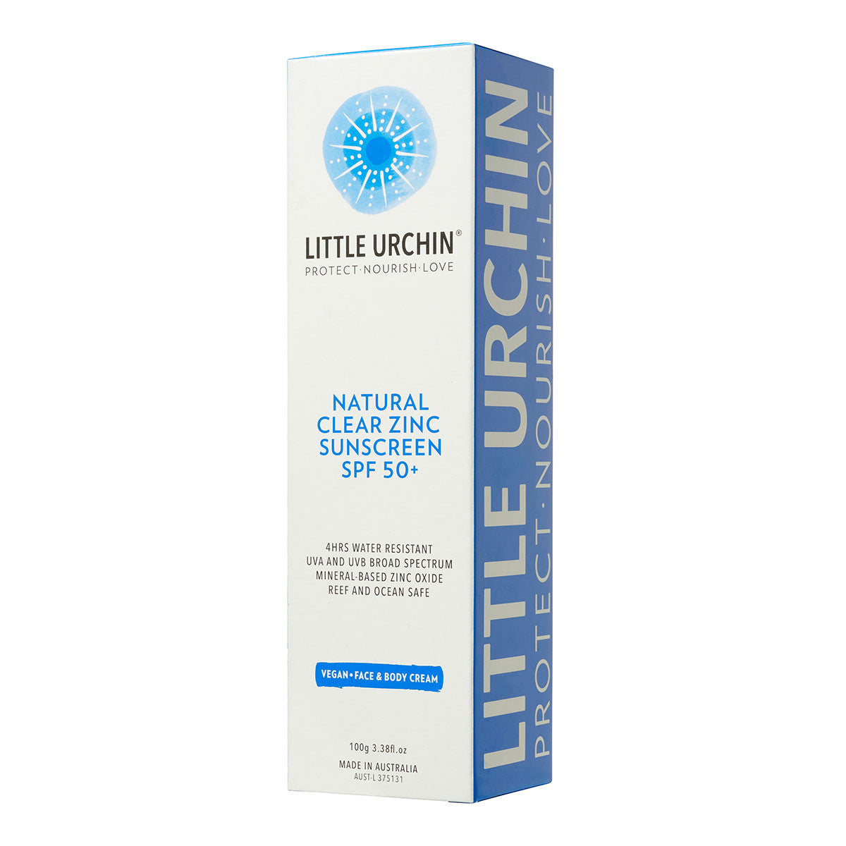 Little Urchin Natural Clear Zinc Sunscreen SPF 50+ is a unique and innovative vegan formula that provides superior UVA and UVB broad spectrum protection from the sun while also being 4-hours water resistant to provide protection while swimming, playing sports or simply spending time in the sun.