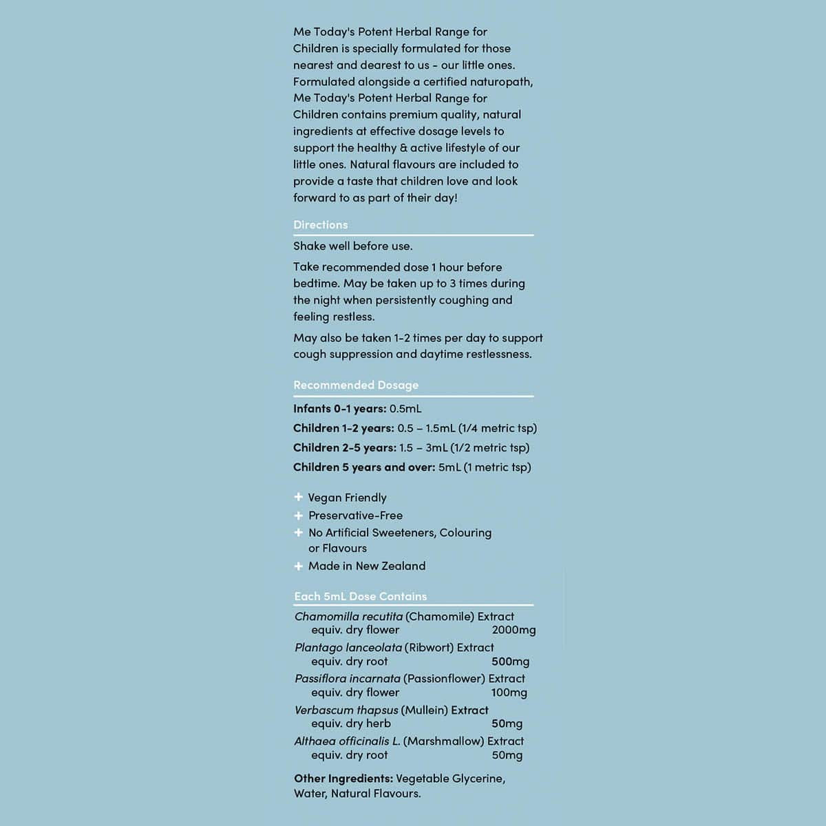 Me Today Potent Herbal Children's Chest & Rest Night is your premium quality formula based on scientific and traditional evidence to support clear airways at bedtime, for a peaceful night's sleep.