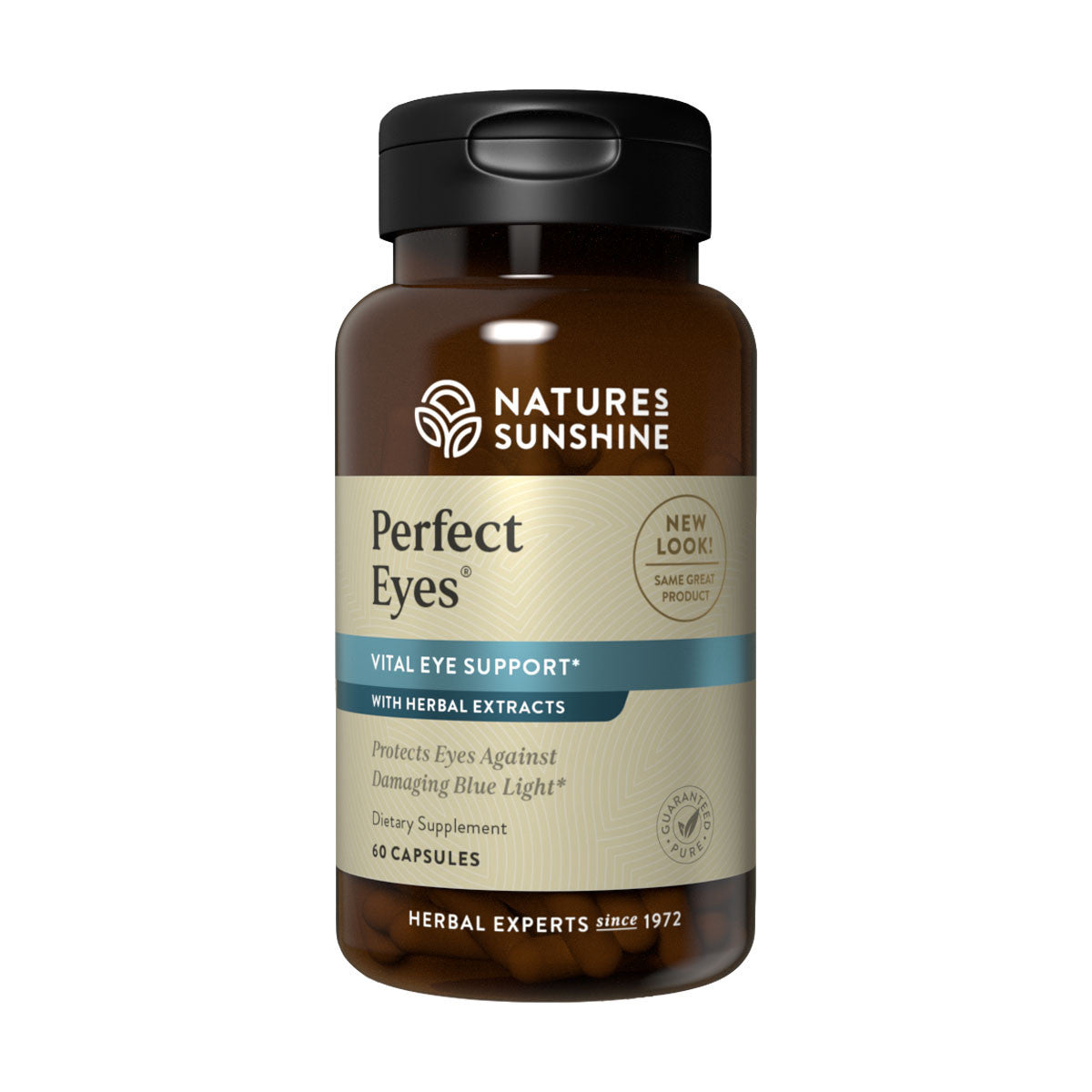 Nature's Sunshine Perfect Eyes: Our eyes are constantly exposed to sunlight and artificial lighting, which can generate free radicals that have harmful effects on ocular cells. After middle age, our natural antioxidant production decreases and the pigments in our eyes change.