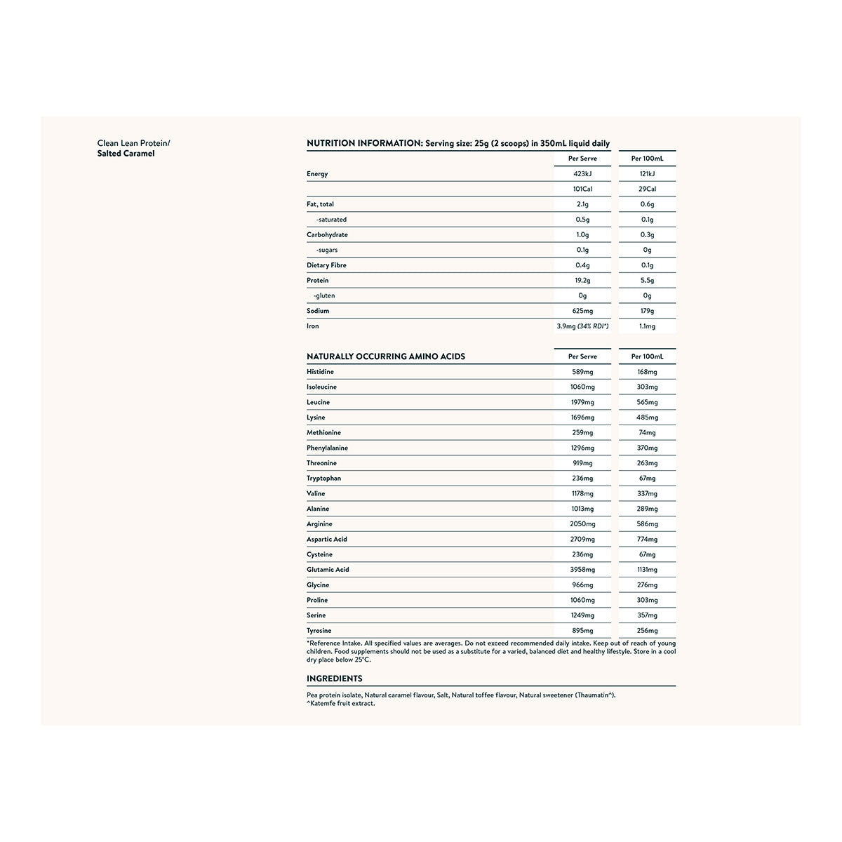 Nuzest Clean Lean Protein Salted Caramel: Powered by European golden peas, Clean Lean Protein contains all 9 essential amino acids and is a good source of iron.