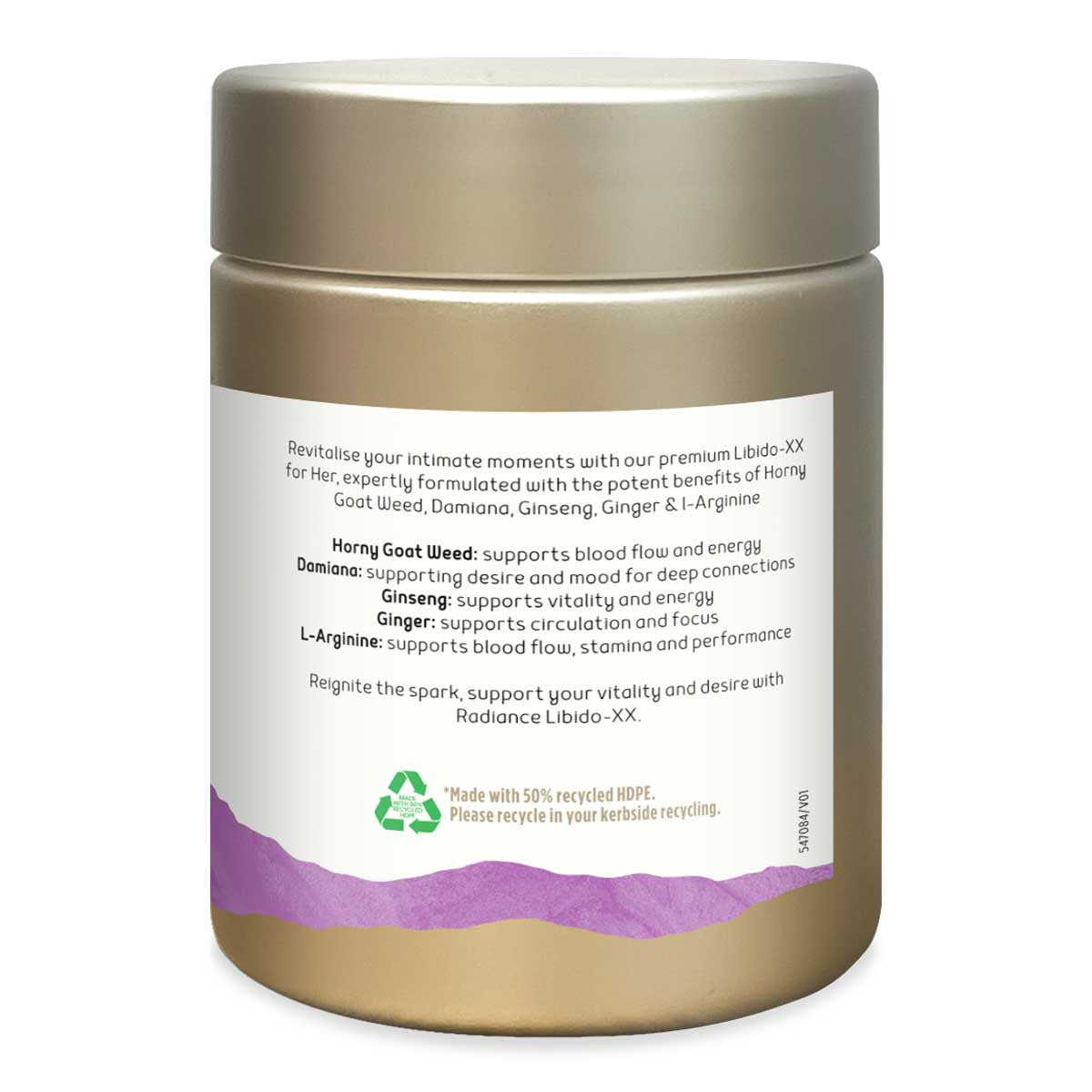 Radiance Libido XX For Her: Revitalise your intimate moments with premium Libido XX for Her, expertly formulated with the potent benefits of horny goat weed, damiana, ginseng, ginkgo & l-arginine.
