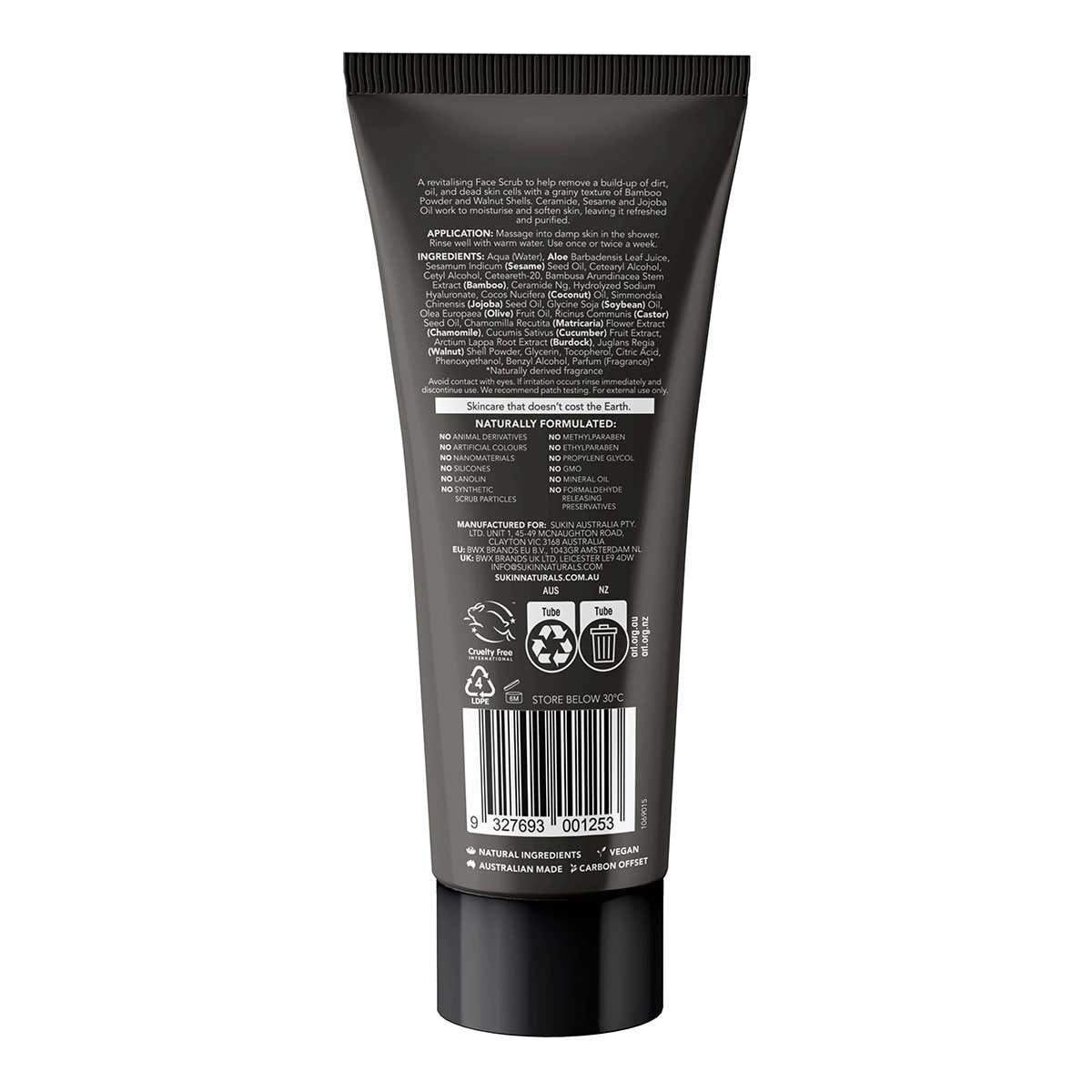 Sukin Face Scrub For Men: A revitalising Face Scrub to help remove a build-up of dirt, oil, and dead skin cells with a grainy texture of bamboo powder and walnut shells. Ceramide, sesame and jojoba oil work to moisturise and soften skin, leaving it refreshed and purified.