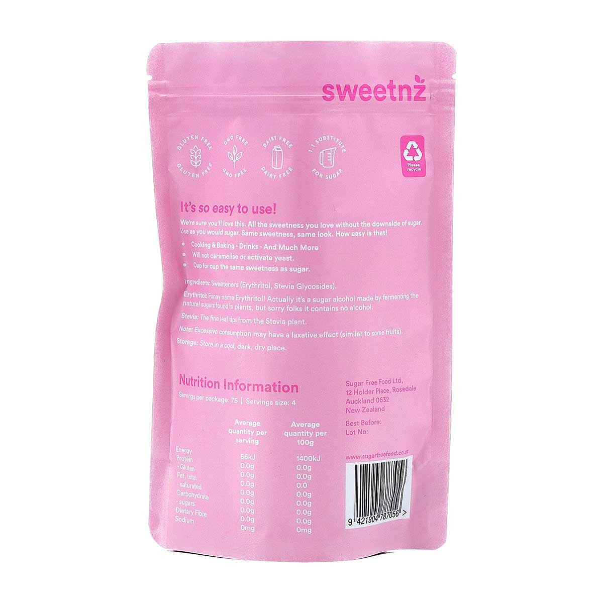 SweetNZ Icing not Sugar is a blend of erythritol & organic stevia. The small amount of stevia added to this blend is just enough to bring it up to the same sweetness as sugar, but has no stevia aftertaste.